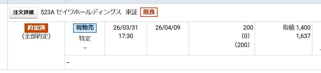 セイワホールディングスを売却しました